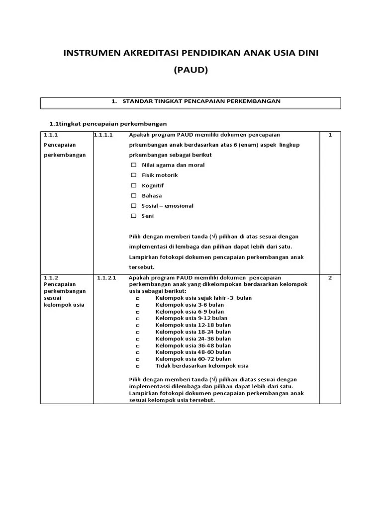 Cover dan lembar pengesahan kurikulum 6. Kebijakan badan akreditasi nasional pendidikan anak usia dini dan pendidikan nonformal (ban paud dan pnf). Aspek perkembangan yang dapat dicapai oleh anak setelah mengikuti kegiatan pembiasaan dalam kurun waktu tertentu. dokumen yang harus di upload adalah. paud melati adalah sebuah lembaga yang bergerak di bidang pendidikan.